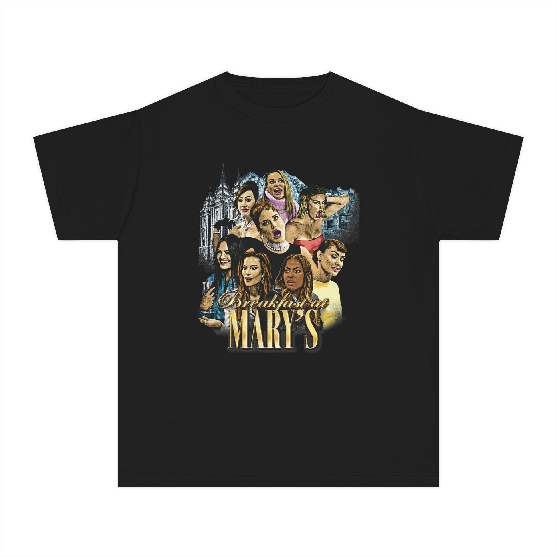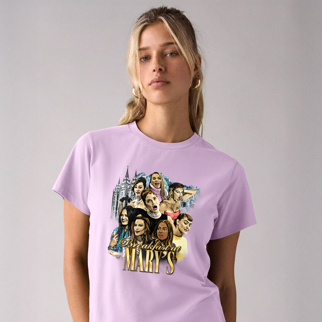 Breakfast at Mary’s Baby Tee Small shirt, big drama. Inspired by Audrey Hepburn’s timeless elegance and infused with Salt Lake City flair, this cropped baby tee is perfect for Bravo fans who love serving Housewives energy in a chic, playful fit. Featuring the Breakfast at Mary’s collage design, it’s made to turn heads at brunch, nights out, or your next Housewives marathon.